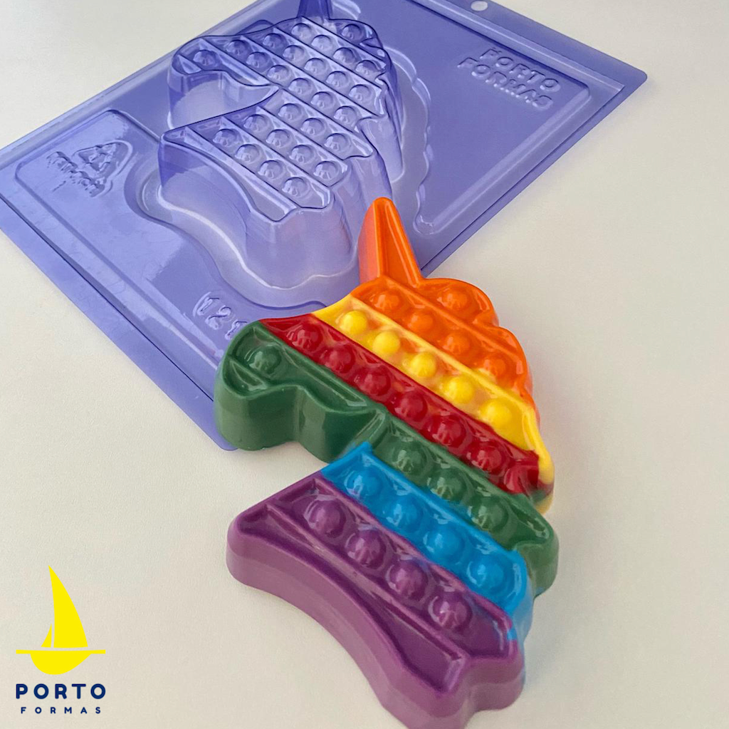 Plastic 3 Piece Chocolate Mould - Pop It Fidget Unicorn is popular for making chocolates for birthday party cakes.