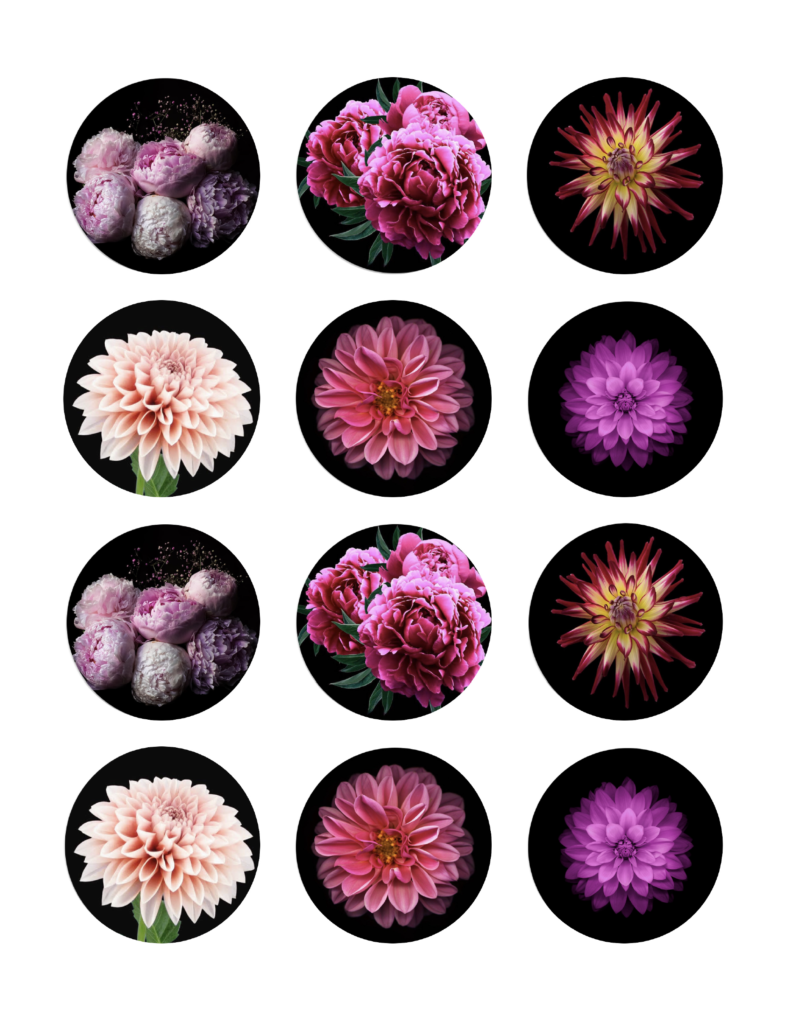 2.5" Cupcake Edible Icing Image - Flowers Assorted 1