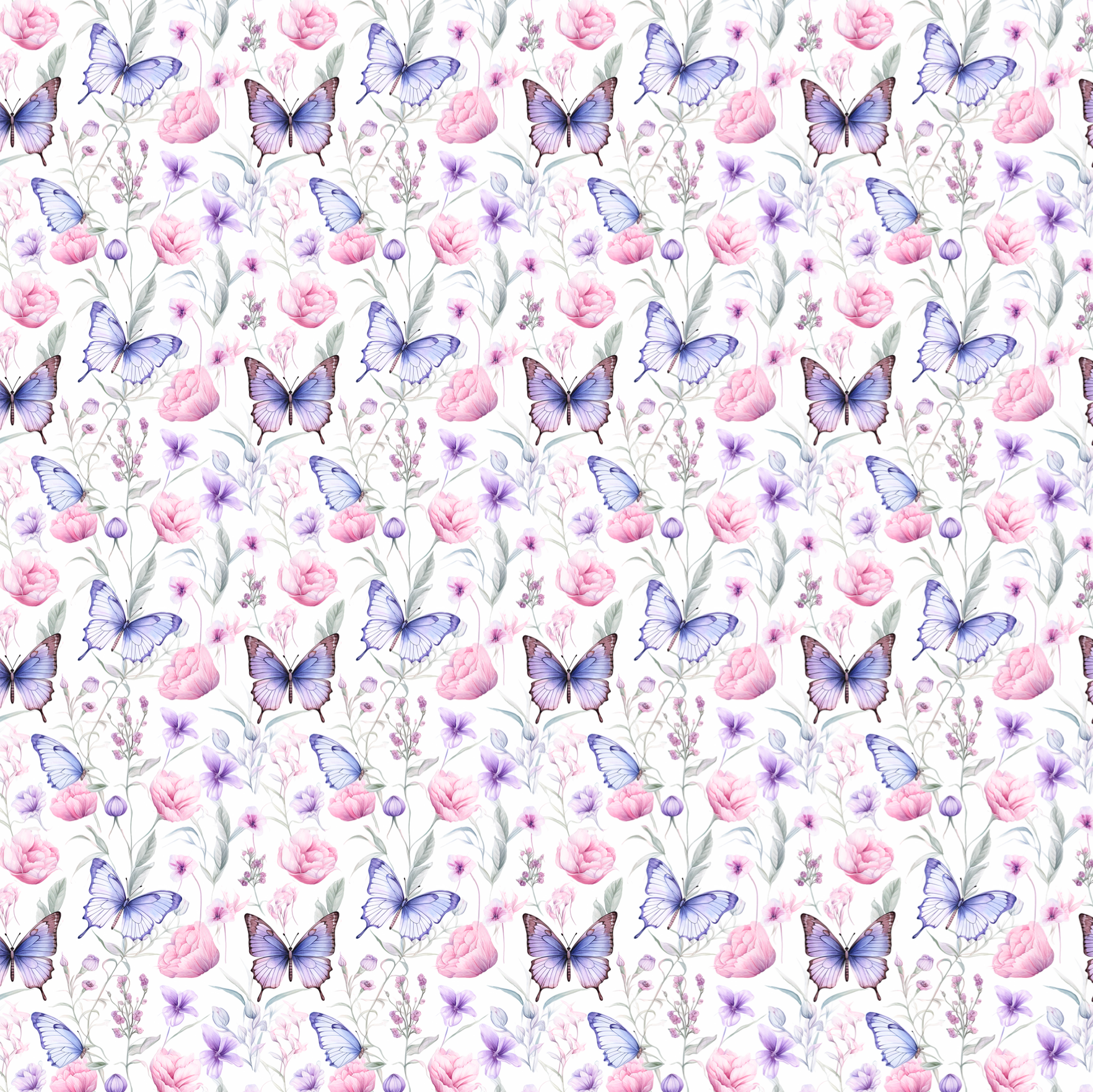 Soft, feminine, and fairytale pretty our Flutter and Bloom custom greaseproof paper features lilac butterflies with pastel pink flowers.