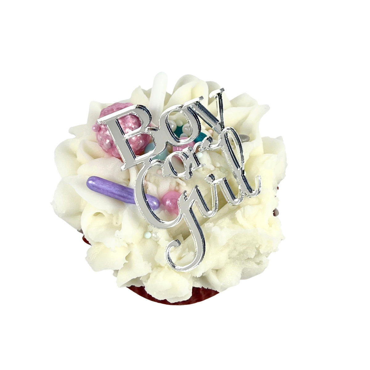 Acrylic Cupcake Topper Charms - Silver Boy or Girl 6pc