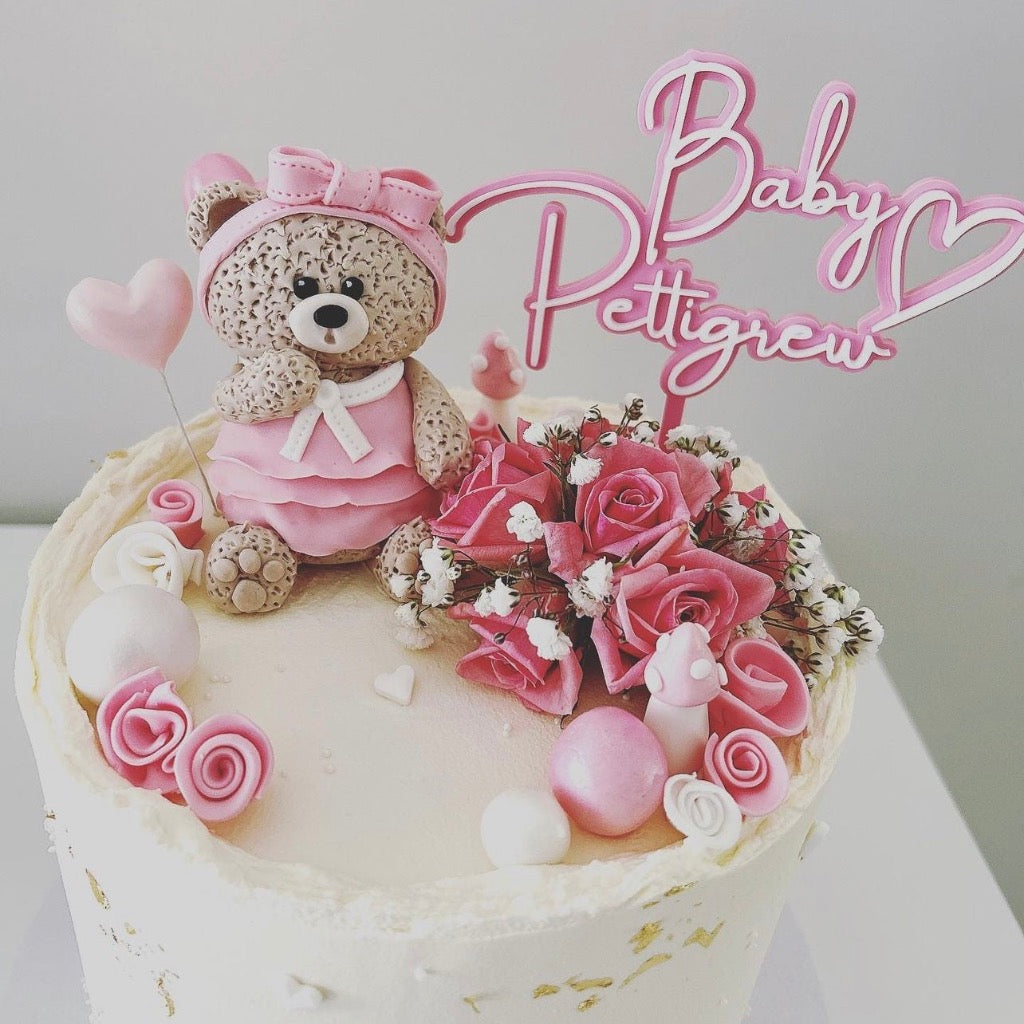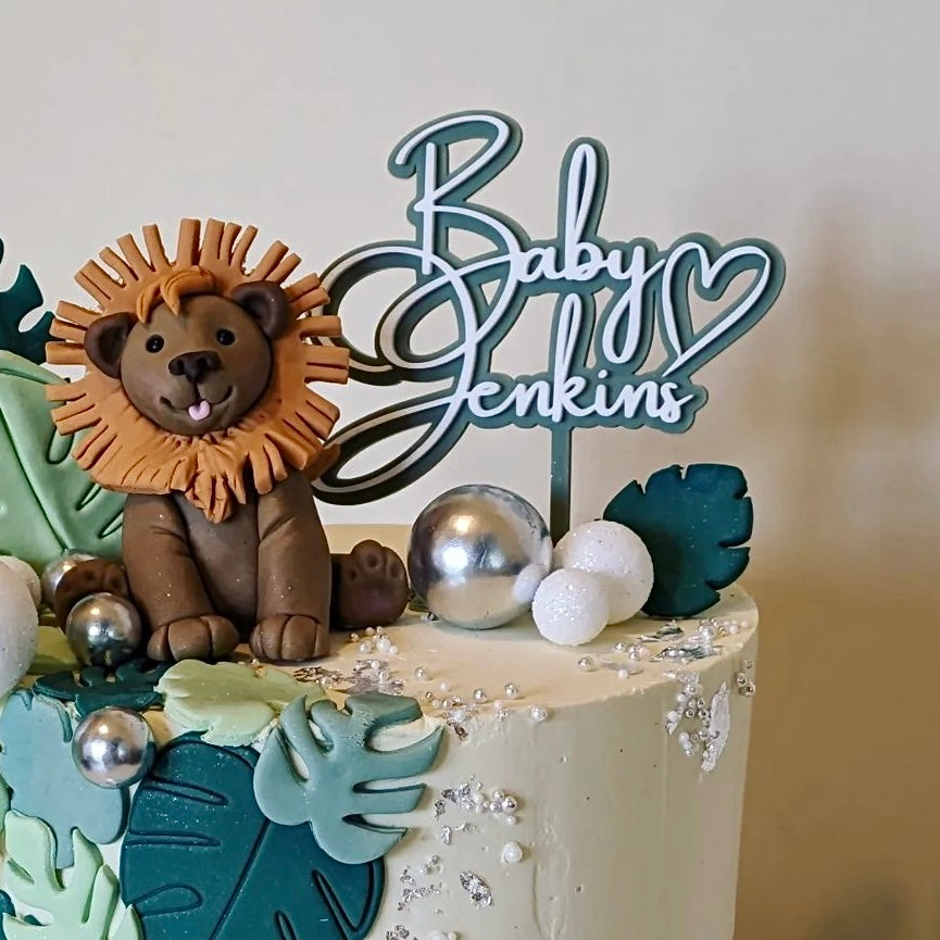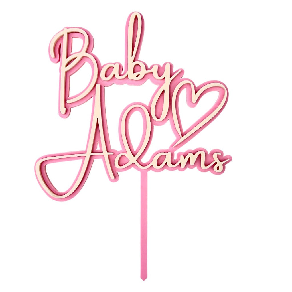A perfect way to add unique touch to your baby shower cake with this double layer custom name cake topper.