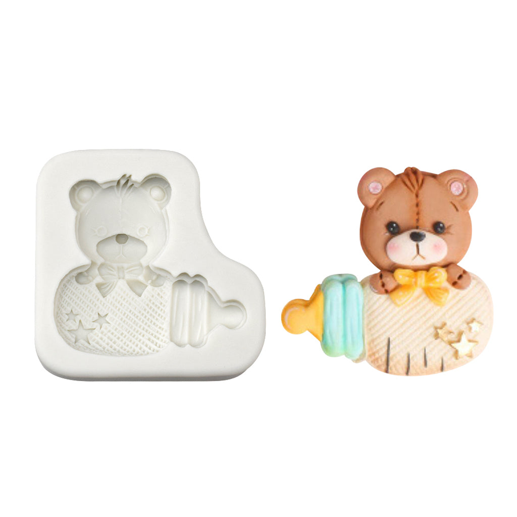 Teddy Bear with Milk Bottle Silicone Mould is great for creating exciting and detailed edible decorations for baby shower cakes and cookies.