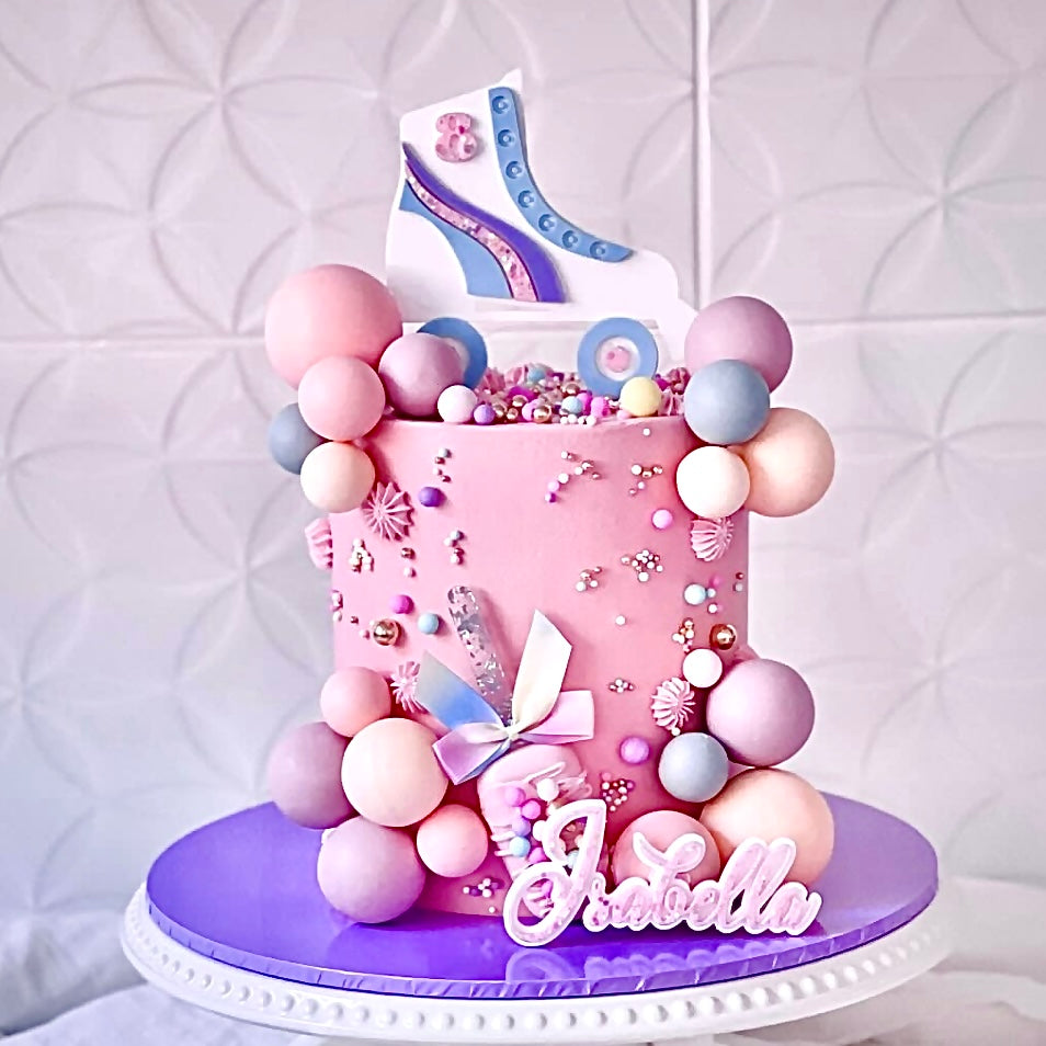 A perfect way to add unique touch to your Roller Skate themed birthday cake with this acrylic layered roller skate cake topper + name cake fropper set.