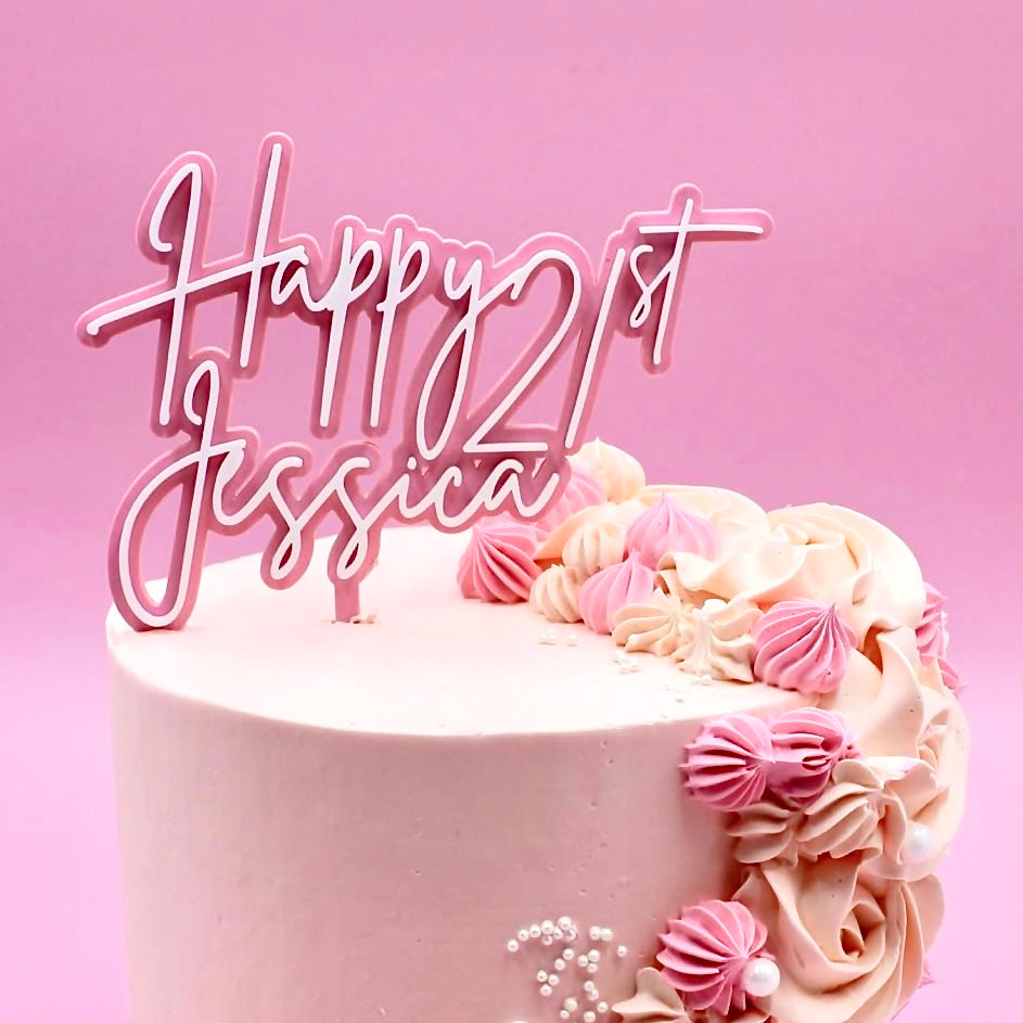 A perfect way to add unique touch to your birthday cake with this double layer custom name and age cake topper.