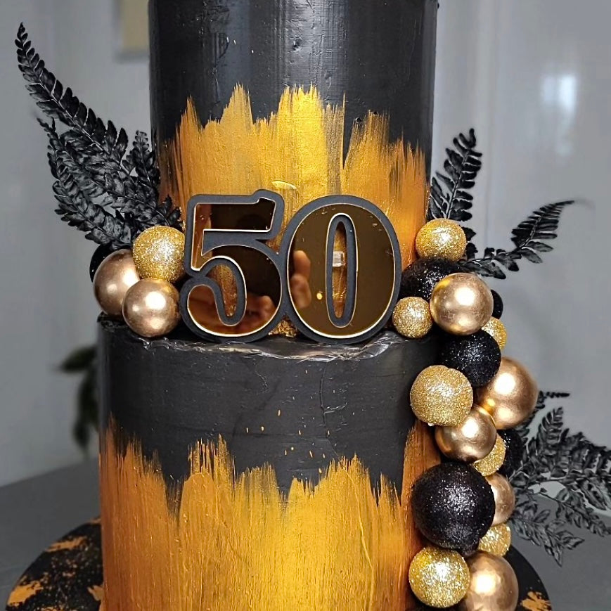 A perfect way to add unique touch to your 50th birthday cake with this acrylic double layered 50 cake fropper.