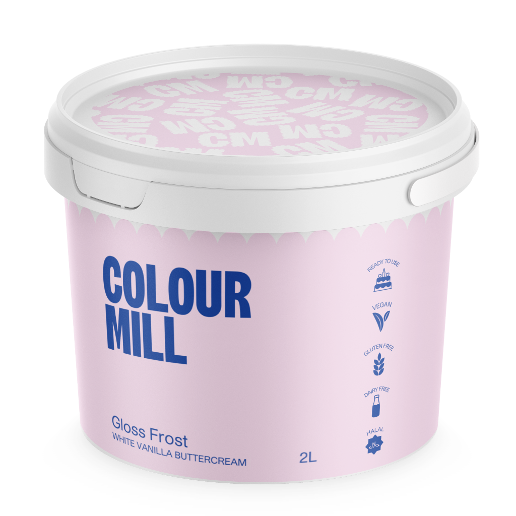 Colour Mill "Gloss Frost" is Swiss Meringue style buttercream and comes in white colour only. Where Over the Top buttercream is American buttercream style and comes in wide range of colours.