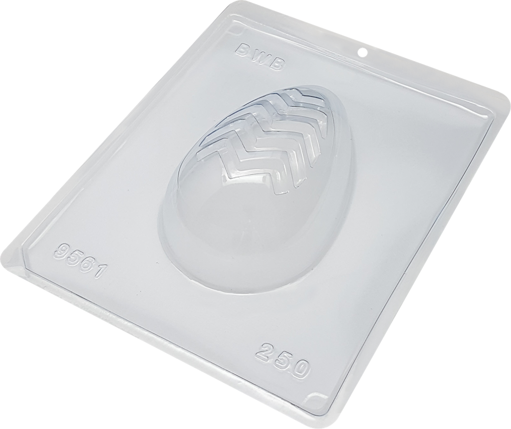 Plastic 3 Piece Chocolate Mould - Hollow Egg Chevron 250g