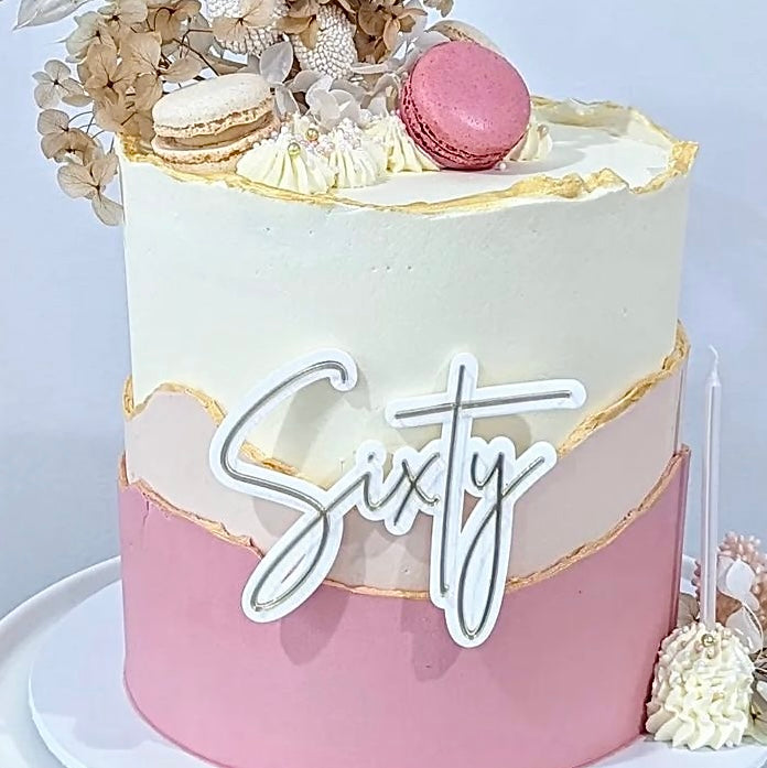 A perfect way to add unique touch to your Sixtieth birthday cake with this acrylic double layered Sixty cake fropper.