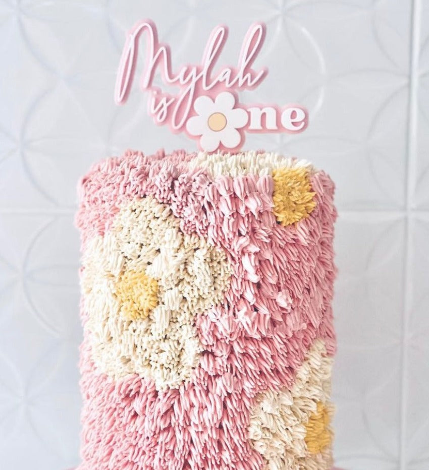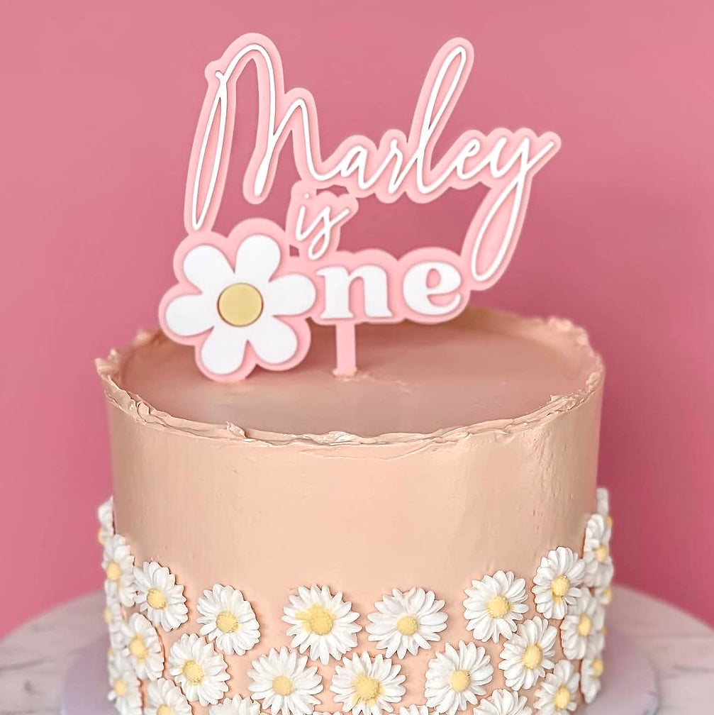 Layered Custom Name and Number Acrylic Birthday Cake Topper - Daisy