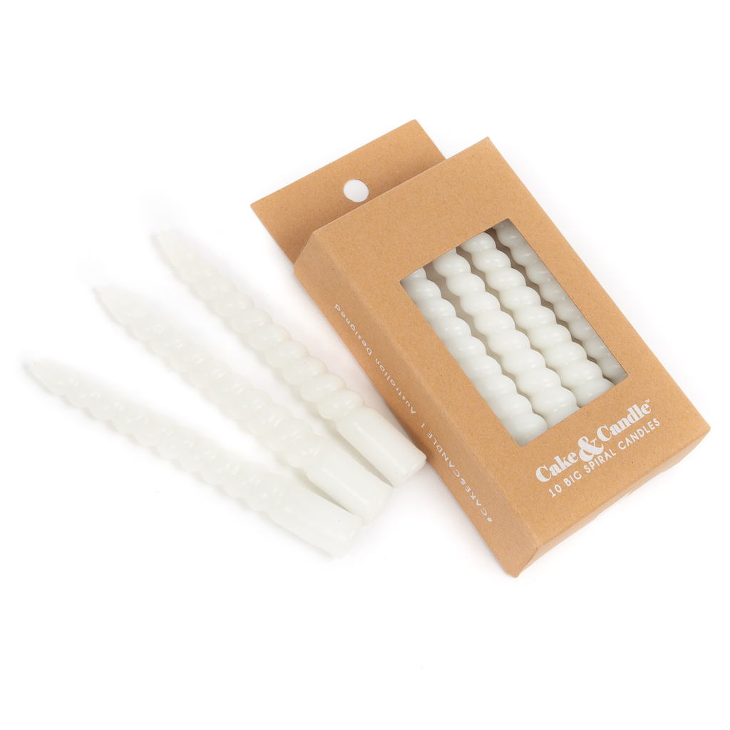 Decorate your next birthday cake with these large spiral white cake candles from Cake & Candle. These quality candles will finish off any cake in style.