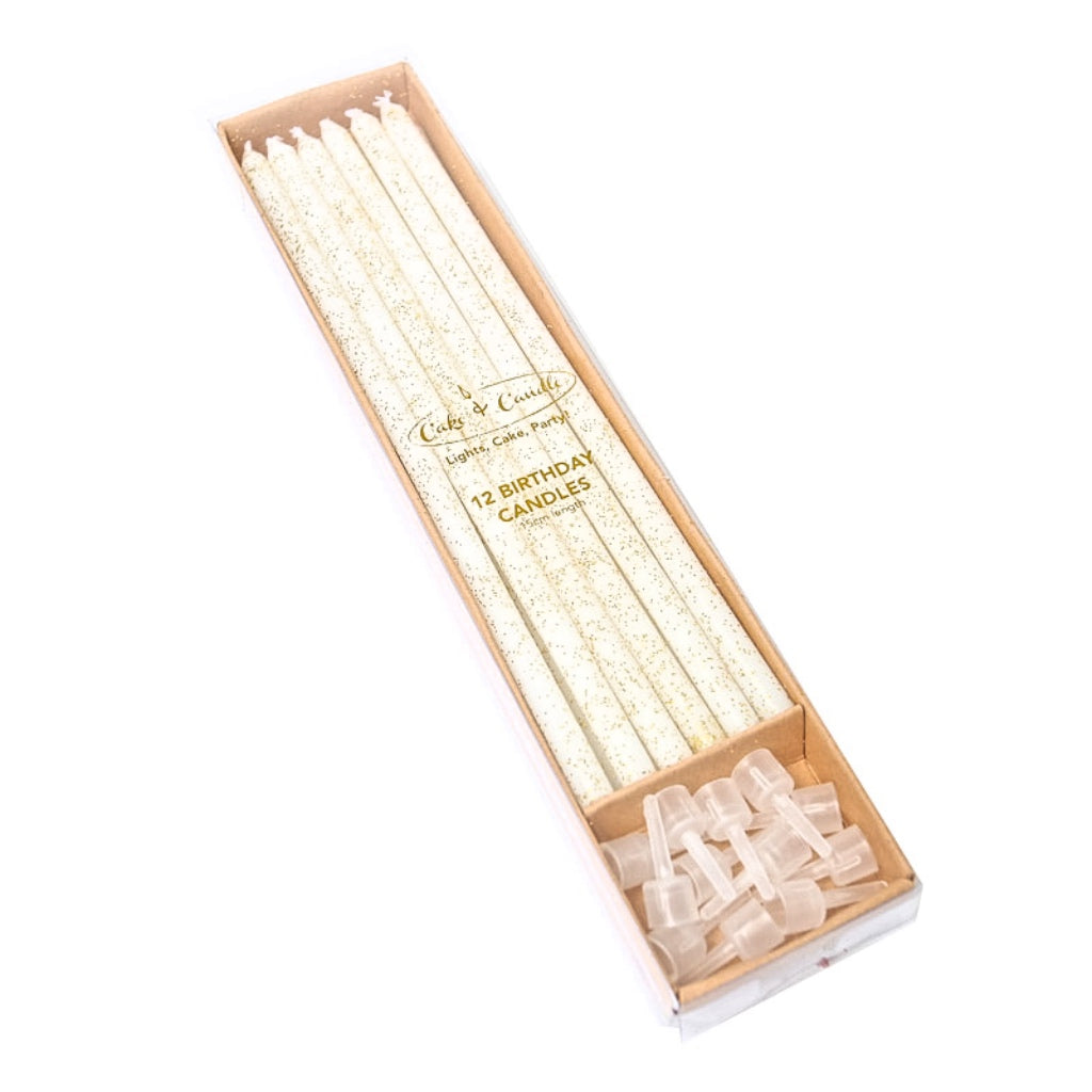 Decorate your next birthday cake with these tall white sparkle cake candles from Cake & Candle. These quality candles will finish off any cake in style.