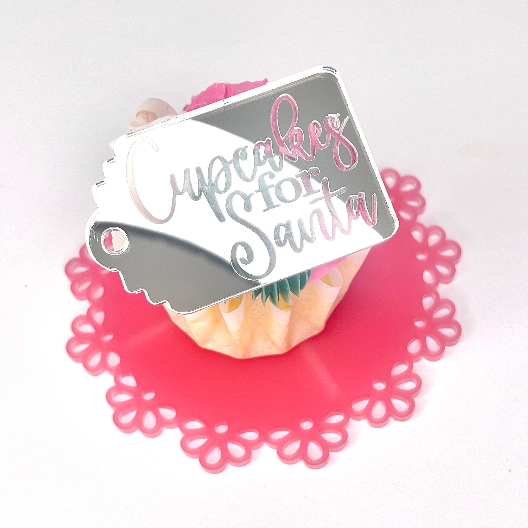 Acrylic Cupcake Topper Charms - Cupcakes for Santa Silver