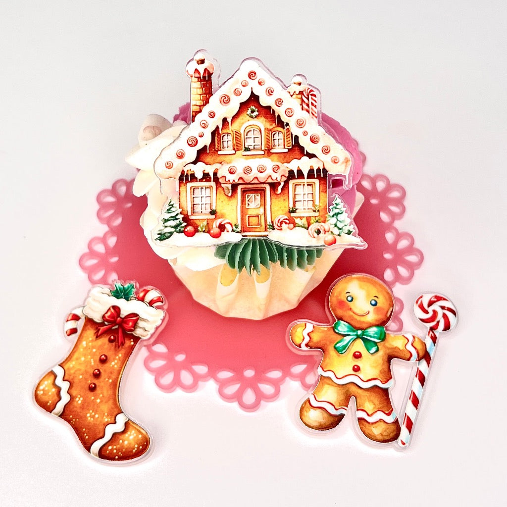 Acrylic Cupcake Topper Charms - Gingerbreads 6pc