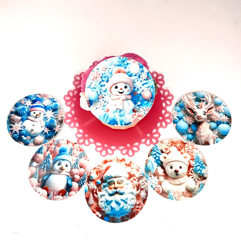Acrylic Cupcake Topper Charms - Pastel Christmas