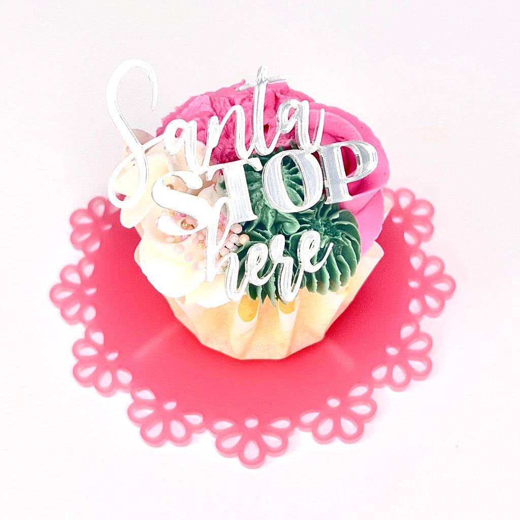 Acrylic Cupcake Topper Charms - Santa Stop Here Silver 6pc
