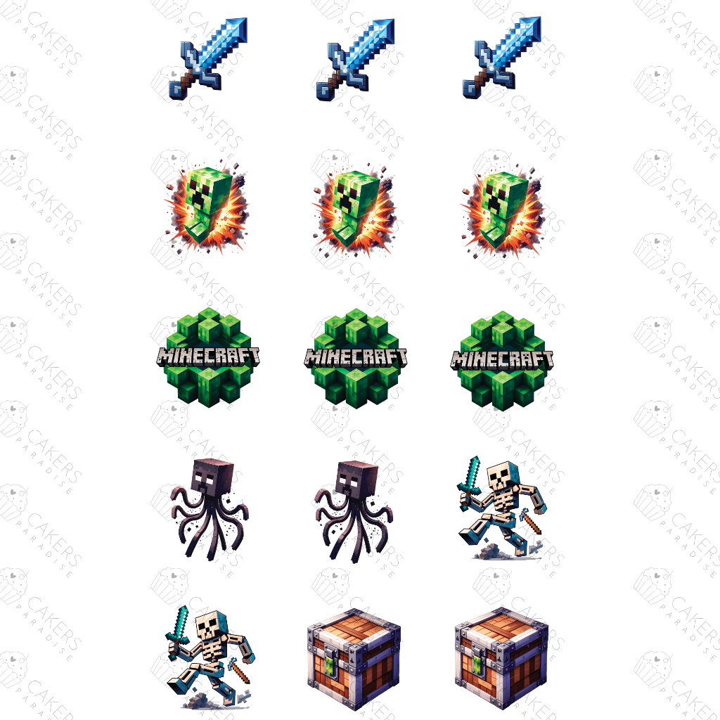 Make picture perfect Minecraft party cookies and cupcakes now with ease. These Minecraft edible images are made using Bake Print edible frosting sheets and edible ink.