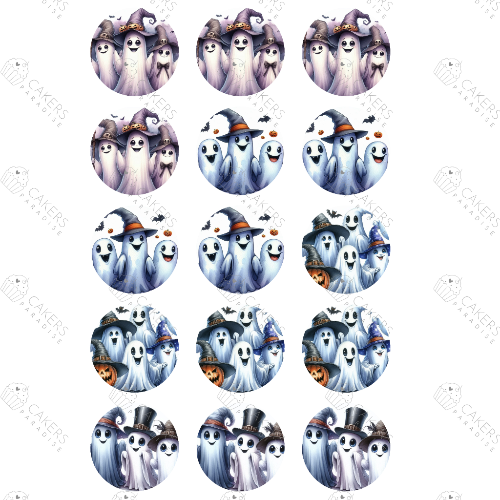 2" Cupcake Edible Icing Image - Witchy Ghosts