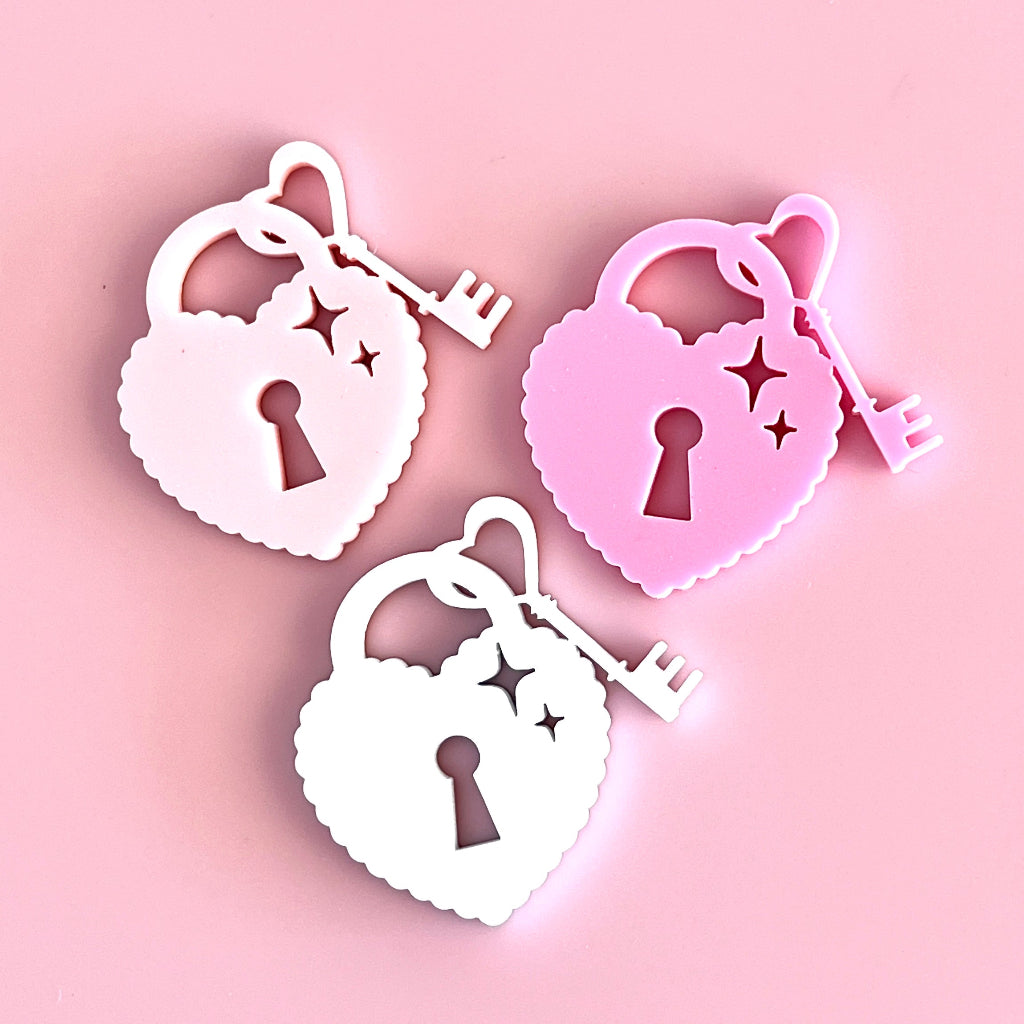 Acrylic Cupcake Topper Charms - Heart Lockets 6pc