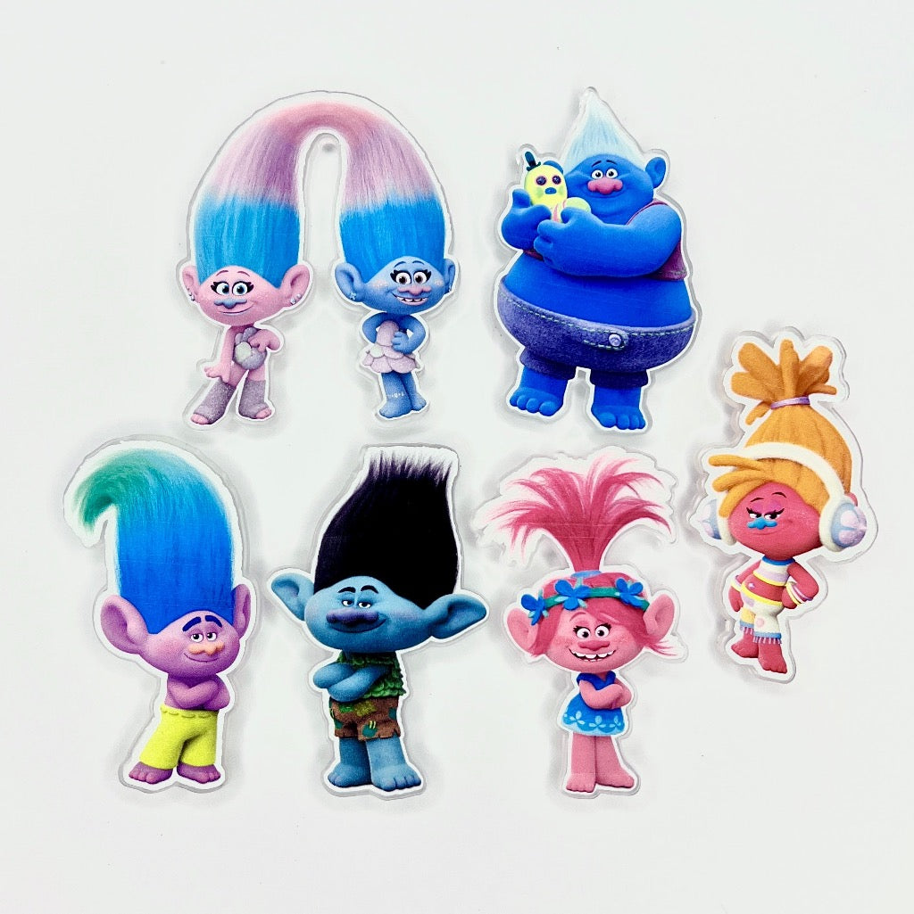 Acrylic Cupcake Topper Charms - Trolls 6pc