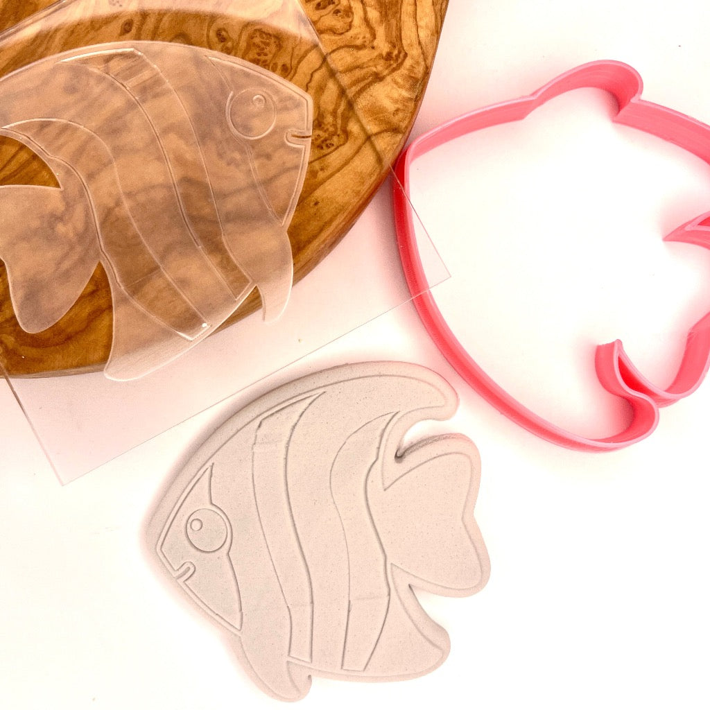 Plastic Fish cookie cutter + cookie stamp, to create PYO (paint your own) cookies and fondant decorations for your next birthday party. This cookie cutter is made using a high quality food safe plastic, and can be used also with gum paste, sugar paste, fondant, modelling paste and more.