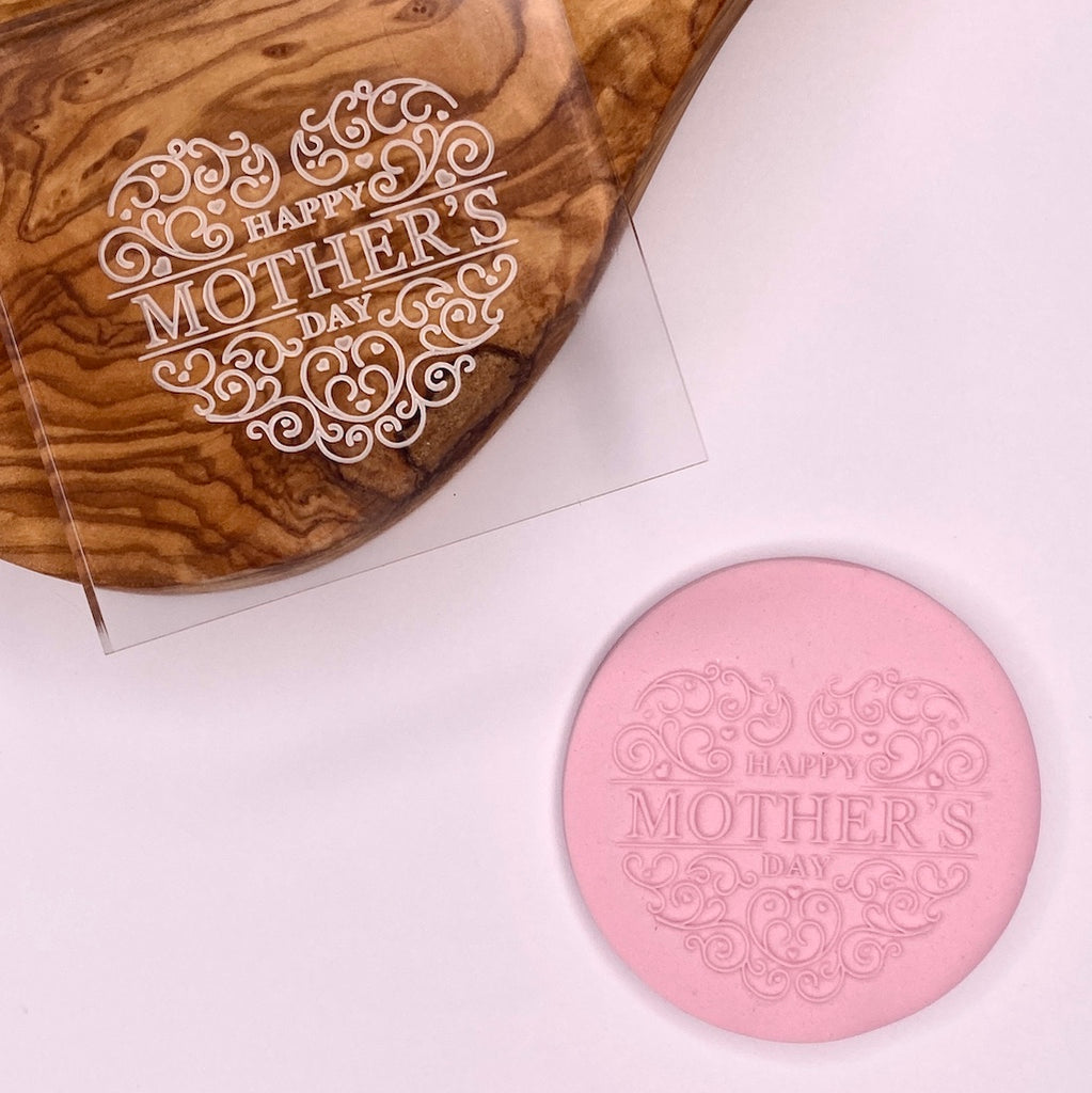 This acrylic Happy Mother's Day cookie stamp debosser is great for creating detailed edible decorations for the Mother's Day cakes, cookies or cupcakes. Fondant debosser can be used with gum paste, sugar paste, fondant, modelling paste and more. This debosser is sitting on 8cm x 8cm disc, and it can be used on cookies sized 6cm and up.
