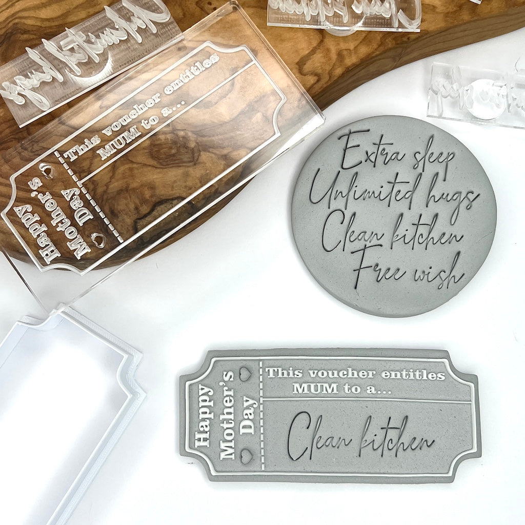 This acrylic Mother's Day coupons cookie stamp debosser is great for creating detailed edible decorations for the Mother's Day cakes, cookies or cupcakes. Fondant debosser can be used with gum paste, sugar paste, fondant, modelling paste and more.