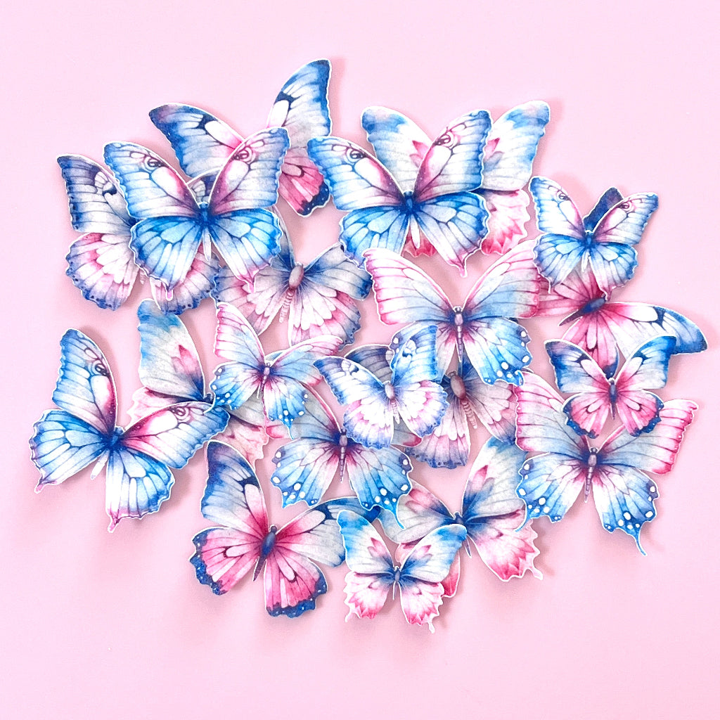 Edible Wafer Cupcake Toppers Butterflies - Cotton Candy 20pc