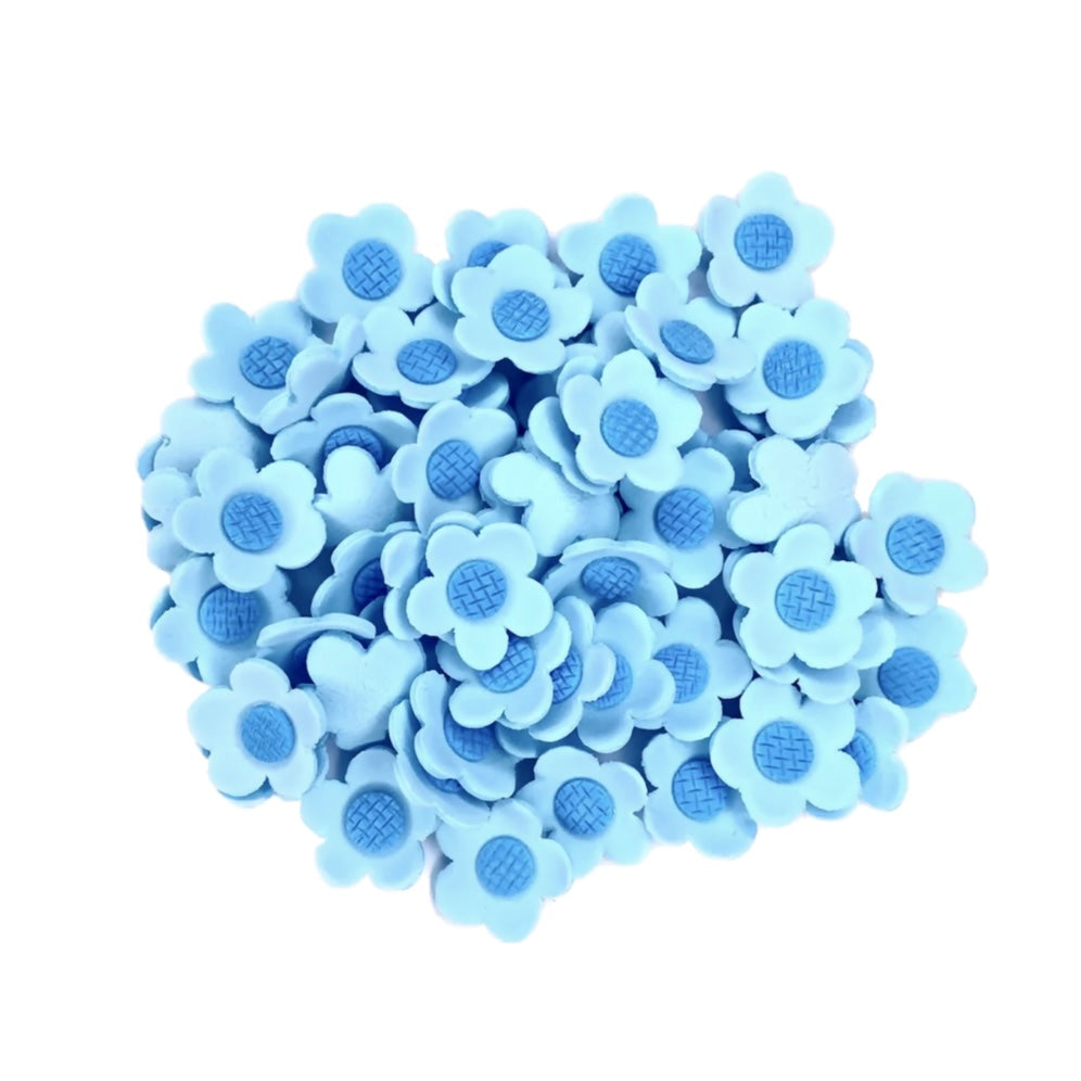 Super cute edible sugar cupcake, cookie or cake decorations. Package includes 15 blue edible sugar flowers. These sugar decorations, are high quality and hand made. Cake decorating will be super easy with these ready made edible decorations!