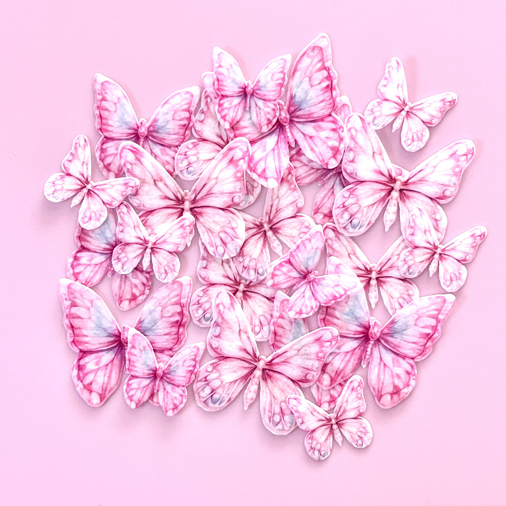 Super cute edible wafer paper cupcake toppers - Mixed Pink Fantasy Butterflies.