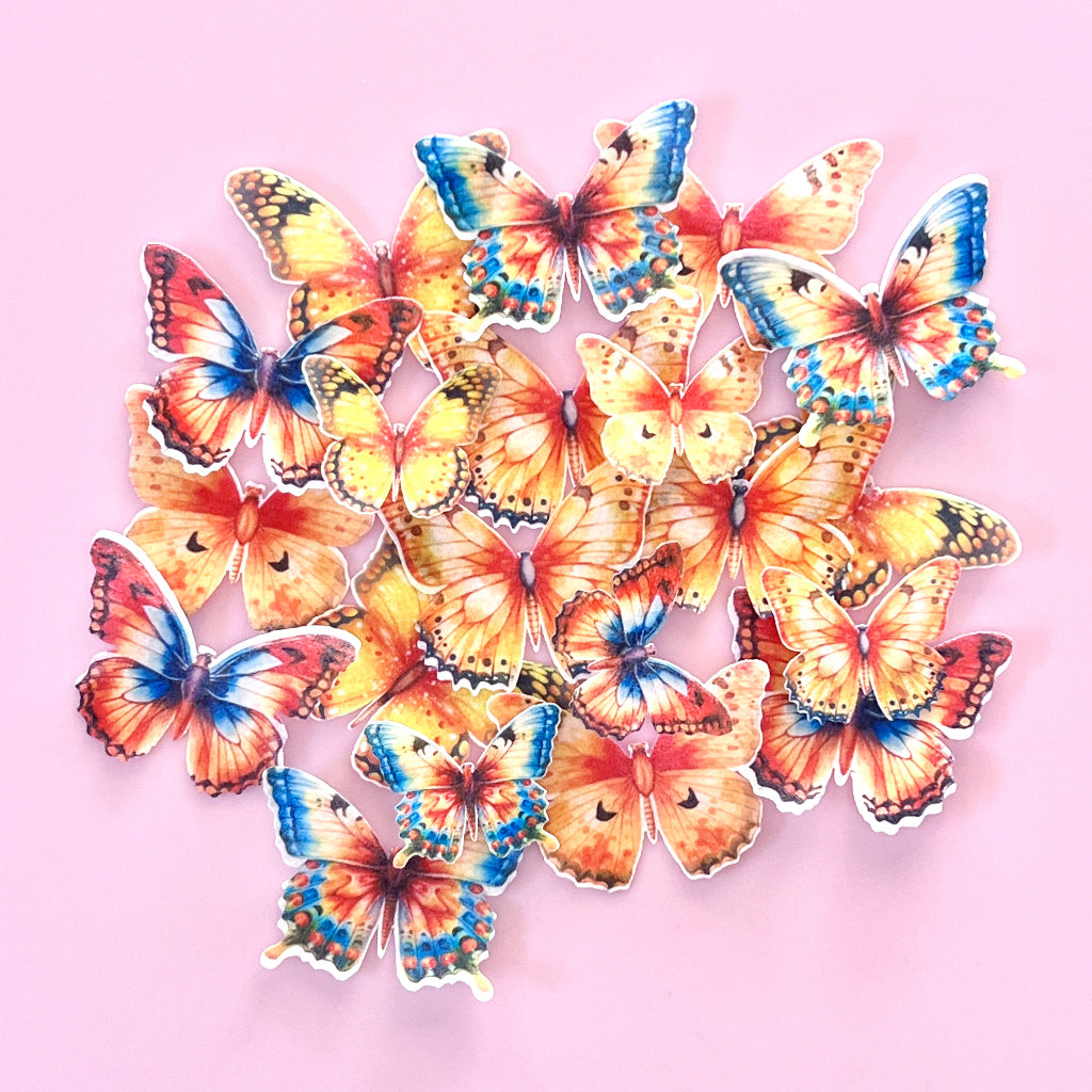 Super cute edible wafer paper cupcake toppers - Mixed Sunset Wings Butterflies.