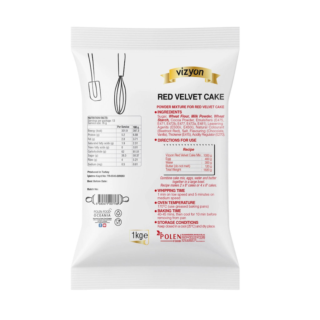 With a fantastic taste and texture, the Vizyon red velvet cake mix provides a genuine, natural flavour with a vivid colour, which comes from natural colourants.