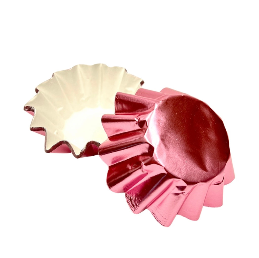 More Cuppies Rose Gold Foil Liners are food grade paper lined for your safety. These will reduce the change of oil bleed and colour bleed.
