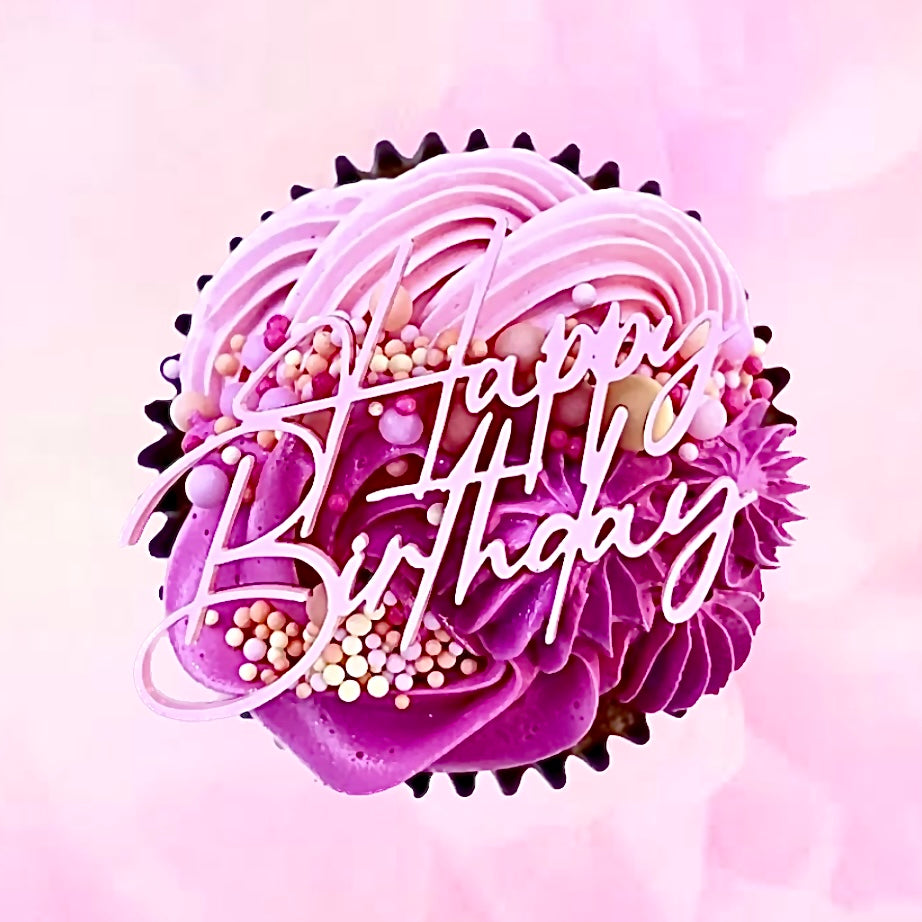 Acrylic Cupcake Charms Happy Birthday 6pc - Assorted Colours