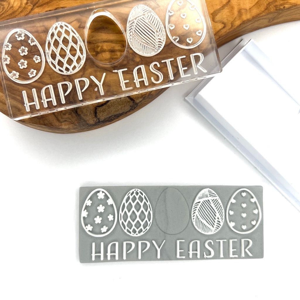 This acrylic Happy Easter Eggs cookie stamp debosser is great for creating detailed edible decorations for the Easter cakes, cookies or cupcakes.