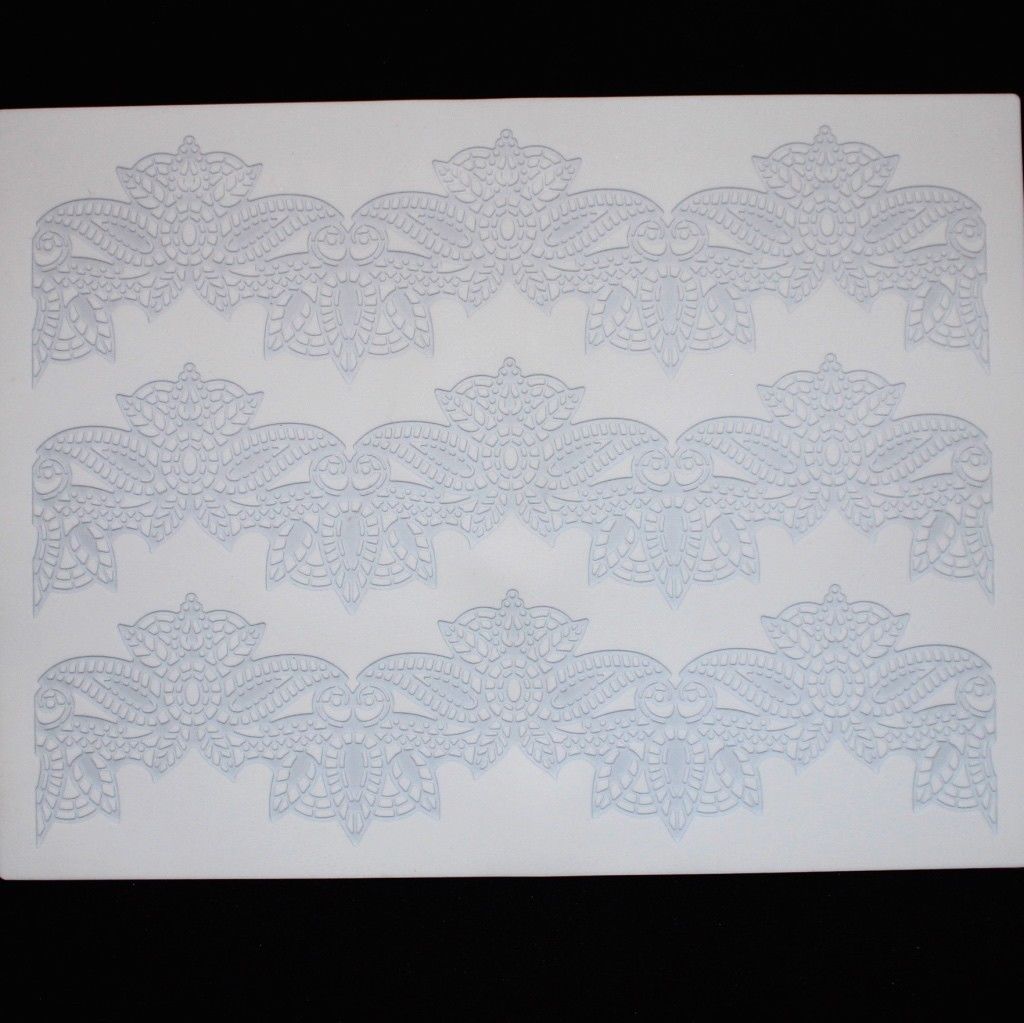 All the silicone cake lace mats can also be used as an impression mats, to create patterns on gum paste, sugarpaste or fondant. All of our lace mats are heat resistant and can be used in -40C - +230C.