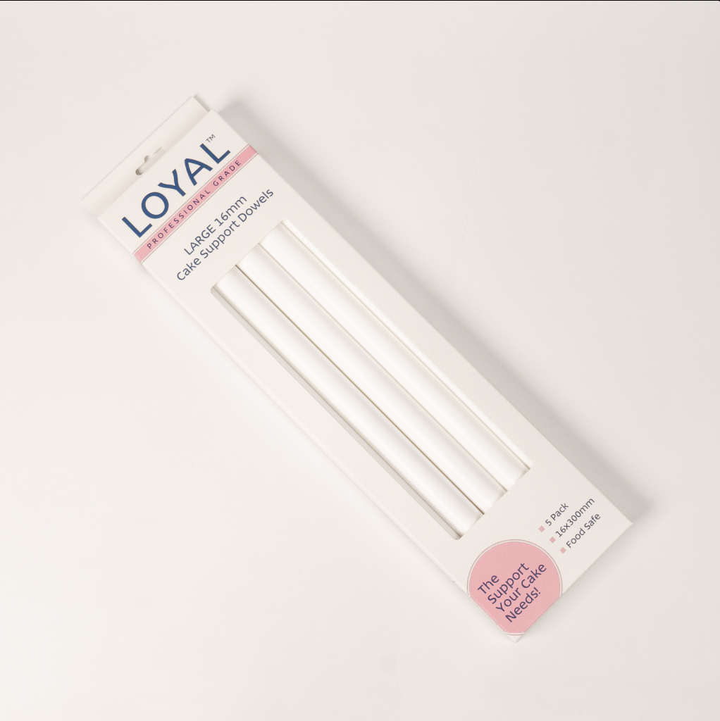 Create tall cakes with confidence knowing your cake will remain sturdy, with food grade LOYAL Cake Dowels! Providing the support your cake needs. Simply cut the heavy duty dowels to your required size.