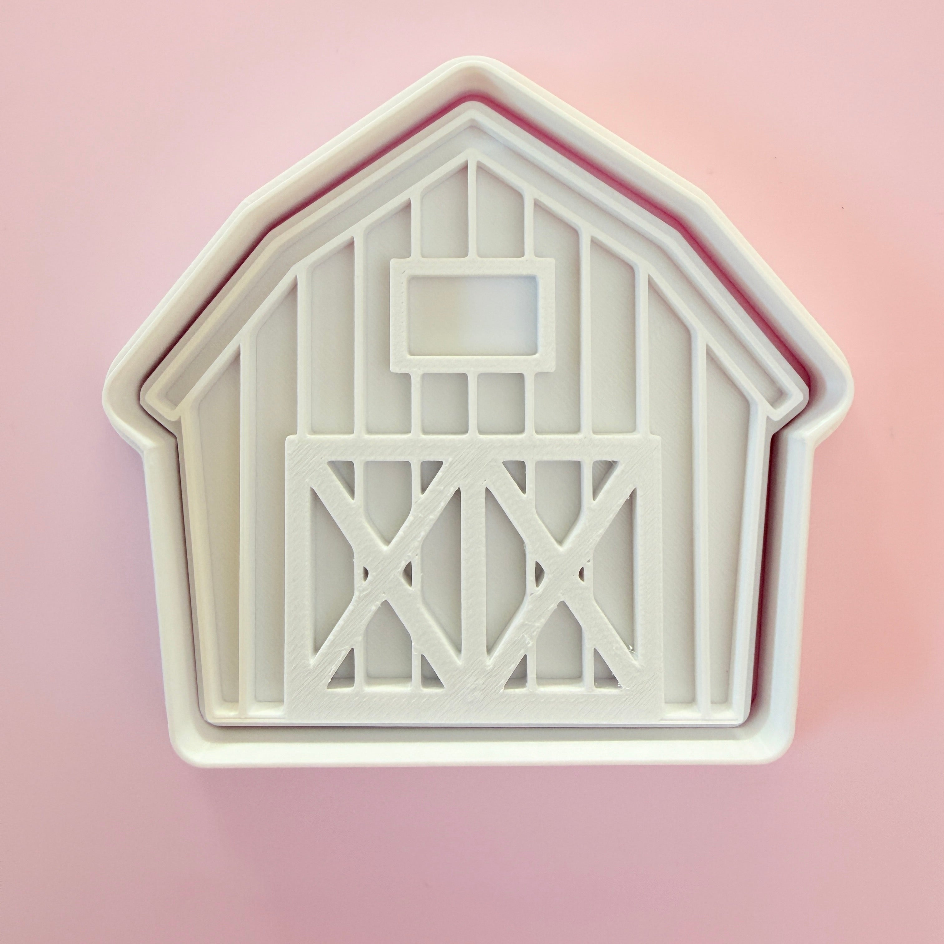 Plastic Cookie Cutter + Cookie Stamp - Barn