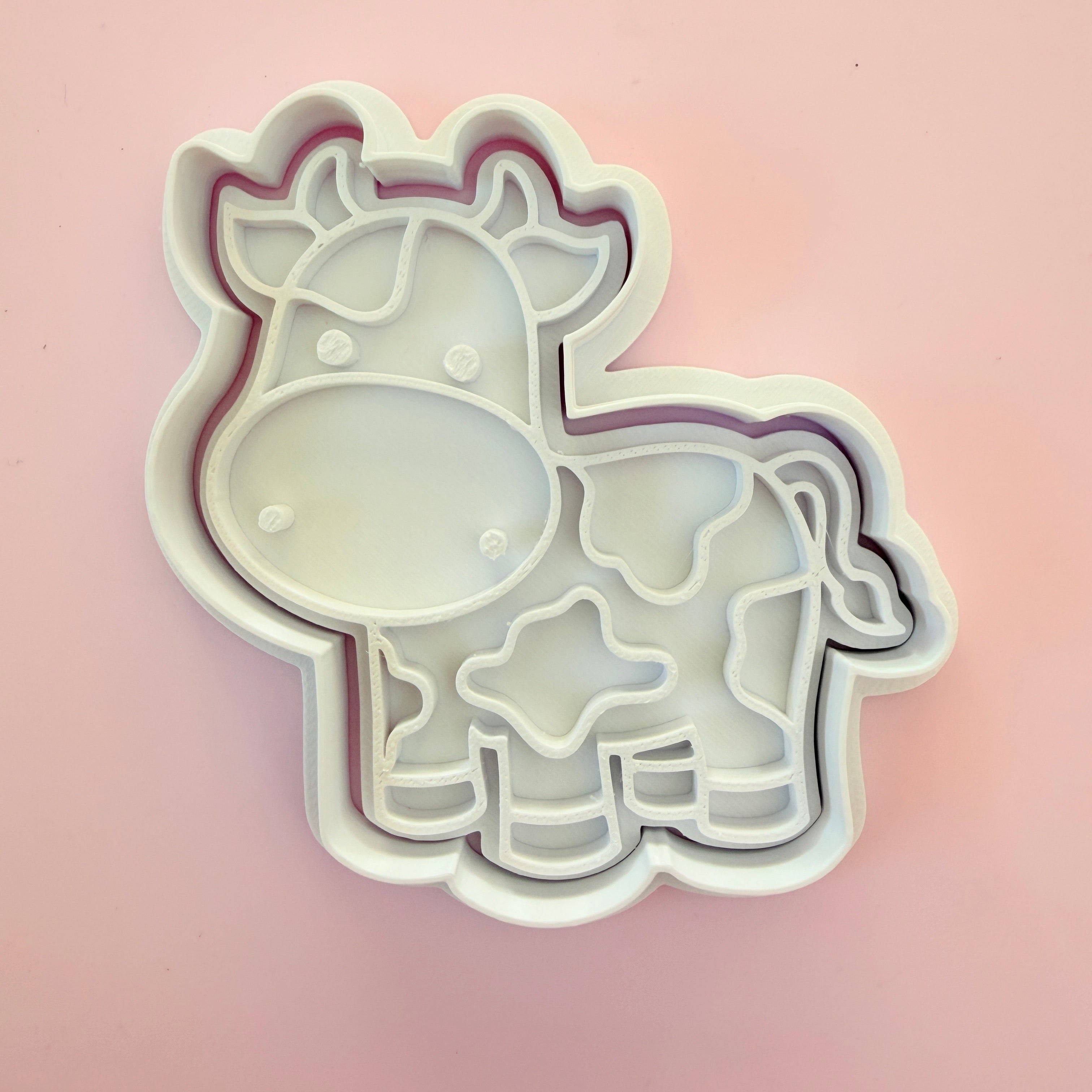 Plastic Cookie Cutter + Cookie Stamp - Cow