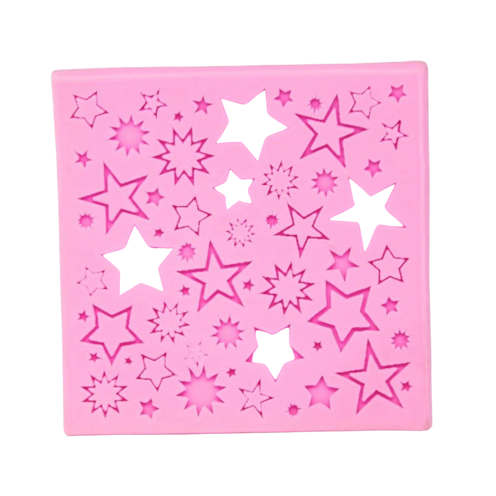 This night sky assorted stars silicone silicone mould is great for creating exciting and detailed edible decorations for your next cake, cupcakes, cookies, macarons and more. Can be used with gum paste, sugar paste, fondant, modelling paste, chocolate, clay, soap and more. Make your figurines extra special, and use some lustra dusts to make it sparkle. Perfect for a birhtday cakes as it makes very cute looking decorations.