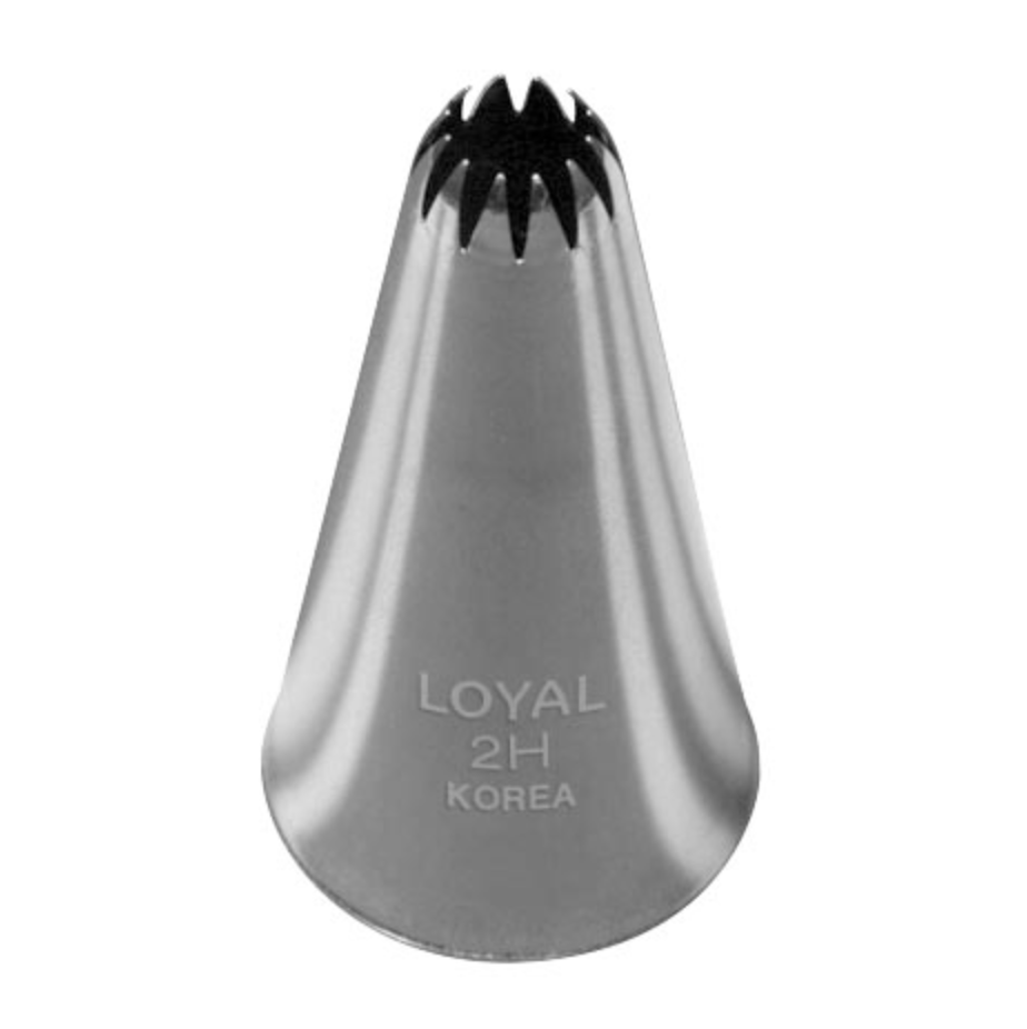 This no.2H closed star piping tip is ideal for piping stars, shells, fleur-de-lis, roses and swirls. Loyal piping nozzles are professional grade.