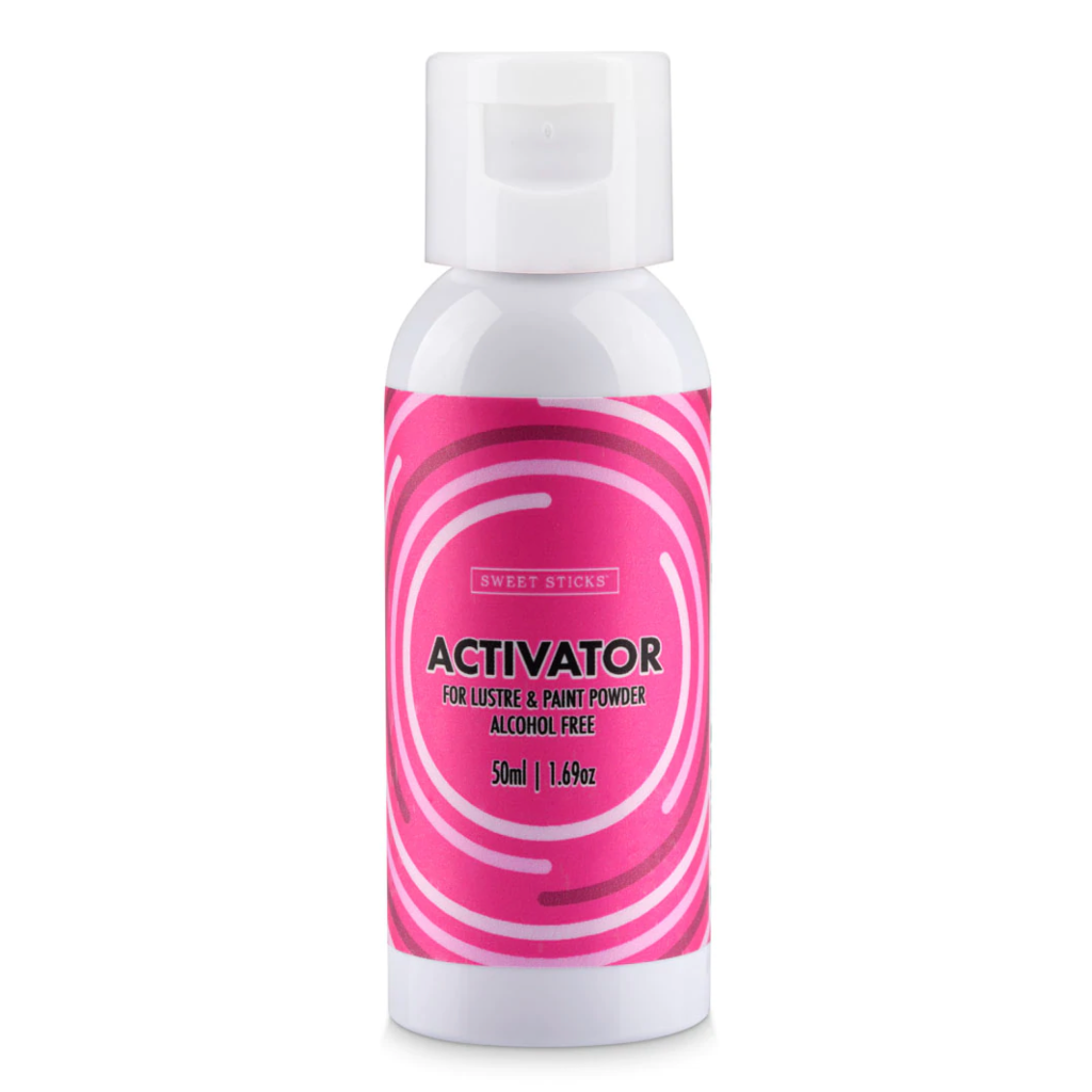 Sweet Sticks Alcohol Free Activator is a revolutionary solution to turn Sweet Sticks Paint Powders & Lustres into pure paint designed for the Religious, Vegan, Conscious Caker and Stencil Artist decorators.