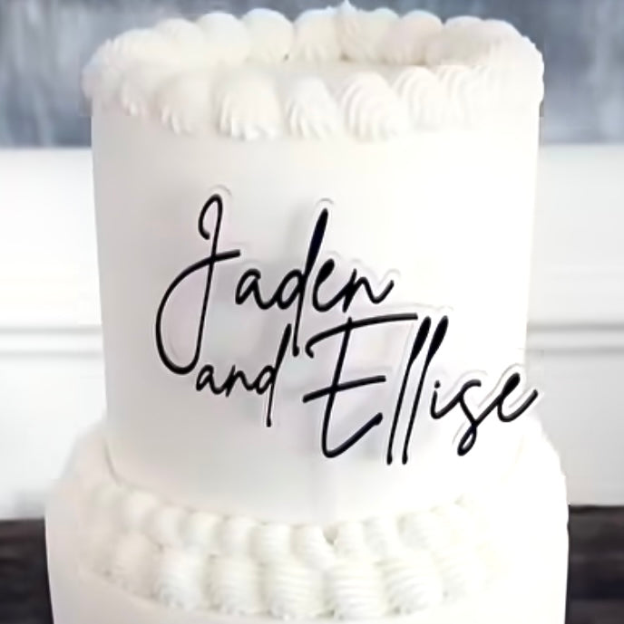 A perfect way to add unique touch to your wedding cake with this double layer custom name cake fropper.