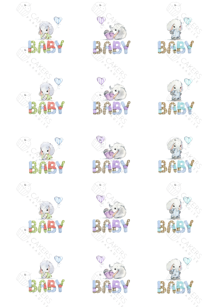 2" Cupcake Edible Icing Image - Cute Elephants