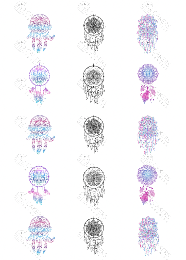 Make picture perfect dreamcatchers for your next party cakes, cookies and cupcakes now with ease. These edible images are made using Bake Print edible frosting sheets and edible ink.