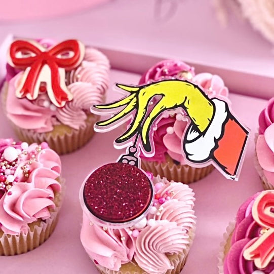 Are you having Grinch themed Christmas this year? These acrylic Grinch cupcake topper charms are perfect to decorate your Christmas cake.