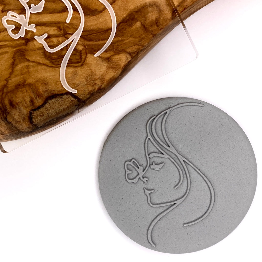 Acrylic Cookie Stamp Debosser - Girl with a Butterfly