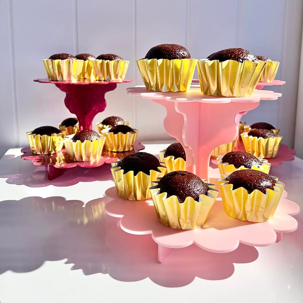 These cupcake stands are perfect addition to your parties comfortably fitting 8 medium size cupcakes. Not only are they perfect for showcasing your cupcakes, but their charming design and vibrant colour options also make them ideal for capturing lifestyle photos and creating engaging social media content.