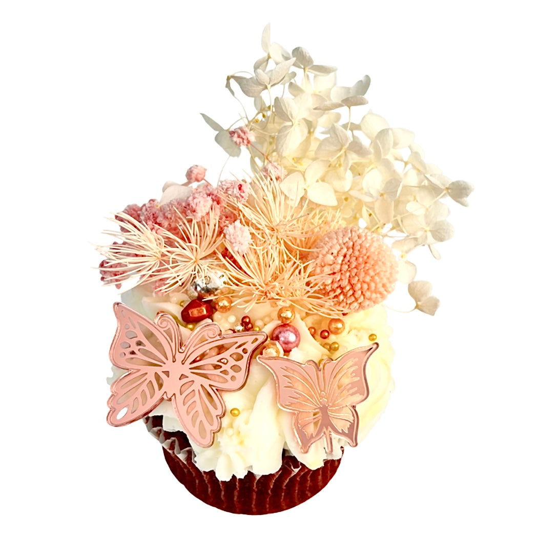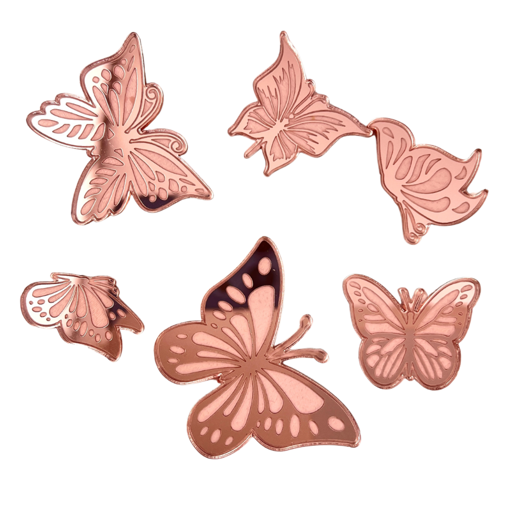 Acrylic Cupcake Topper Charms - Rose Gold Butterflies 6pc