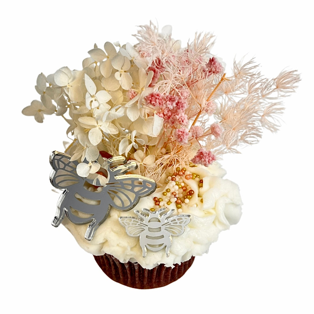 These gorgeous and super shiny mirrored acrylic cupcake topper bees are perfect to decorate handmade or shop bought cupcakes.