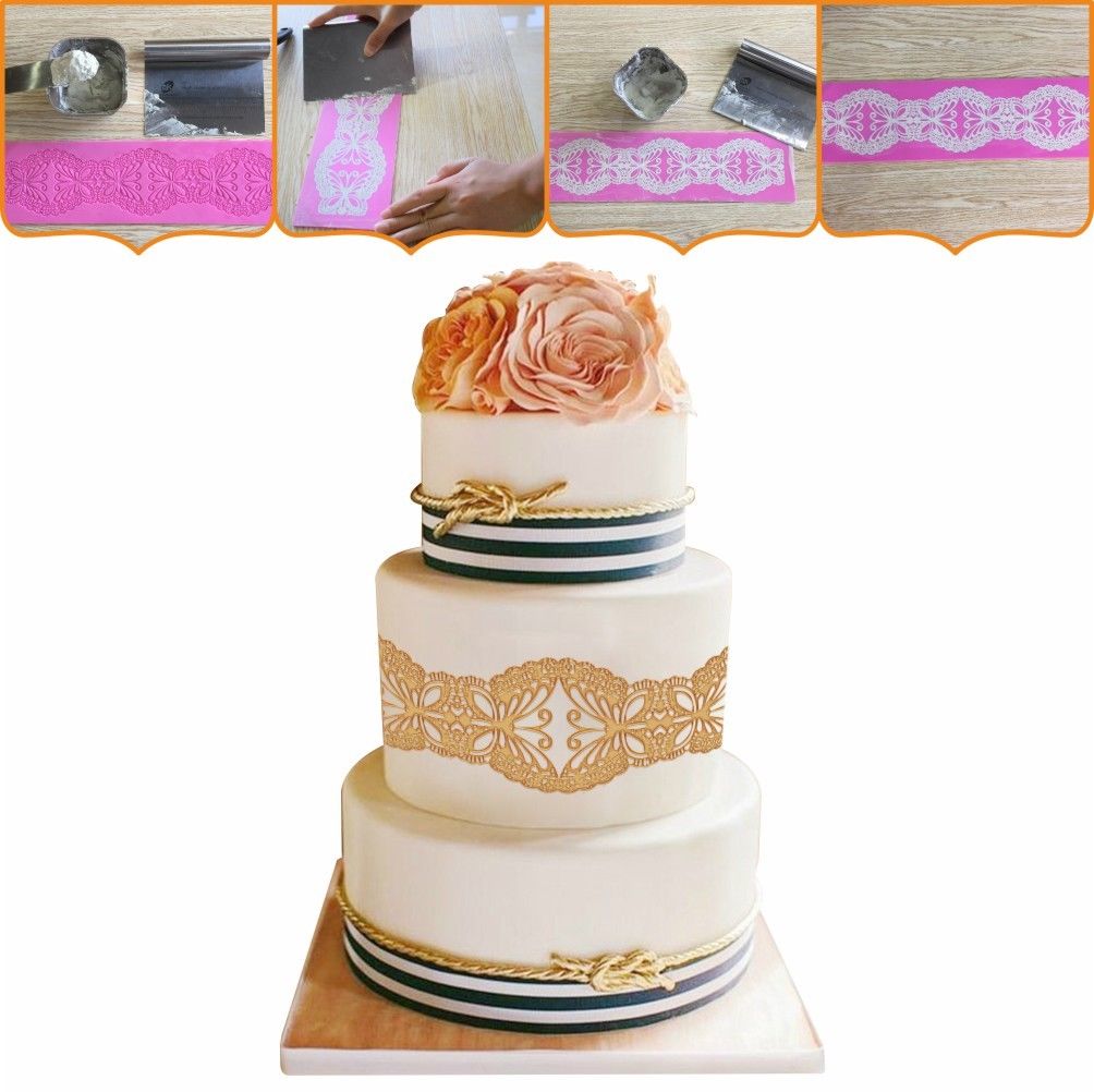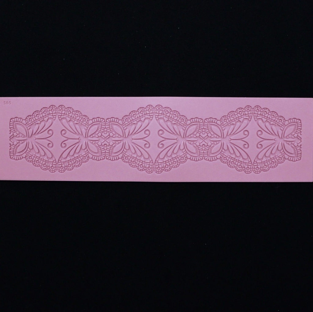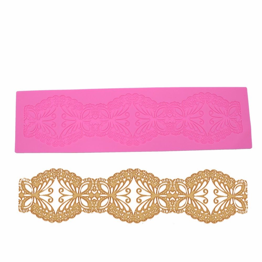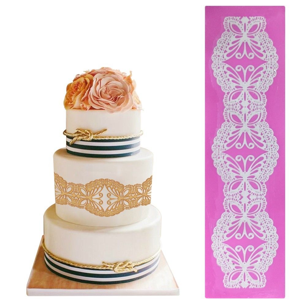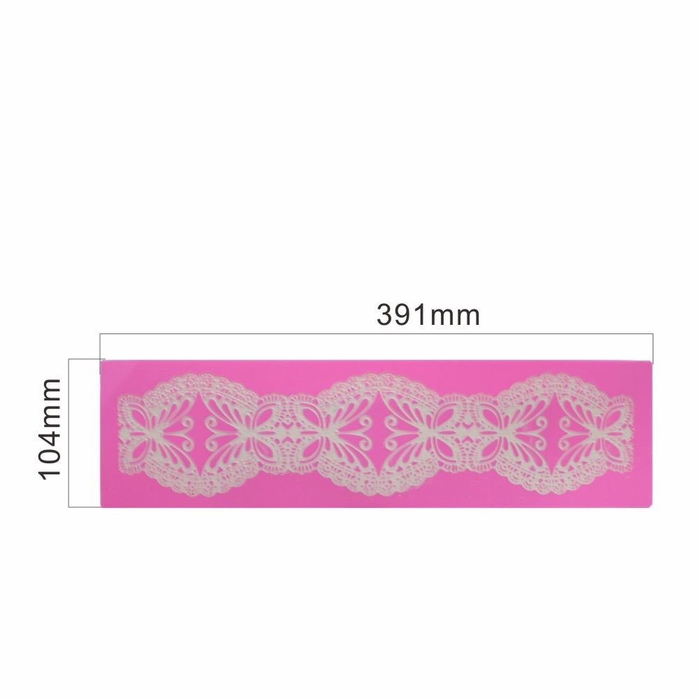 Brand new butterfly strip non slip food grade silicone cake lace mat. Create your own gorgeous lace work for decorating wedding cakes, party cakes, cupcakes, cookies and more. This mat is made from food grade silicone and is flexible, soft and easy to clean. It is also microwave, oven and dishwasher safe. All of our mats are suitable for use with Cake Lace by Claire Bowman, Sugarveil, Crystal Lace, Flexi-Paste and other cake lace products on the market or with home made lace mix.